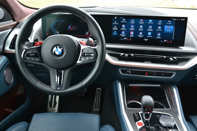 Як і всі нові BMW, XM отримав вигнутий двосекційний дисплей на передній панелі. Віртуальна панель приладів змінює графіку, залежно від обраного режиму, можна вивести на екран і карту навігації. Покази добре зчитуються, а ще є й проекція на лобове скло.