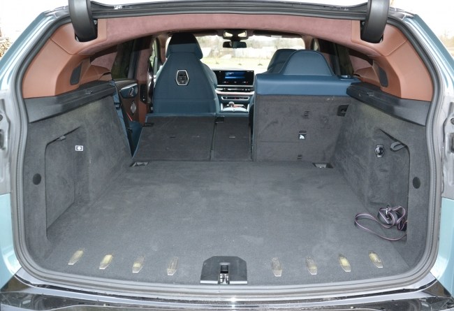 Багажник не надто великий для таких розмірів - в 527 л. Зате він широкий і оздоблений краще, ніж салони деяких авто. Підлога тут висока і запаски немає, адже внизу схована батарея. Електропривод дверей багажника, звісно є, а от задні сидіння треба складати вручну. У двомісній конфігурації виходить 1820-літровий відсік із рівною підлогою.